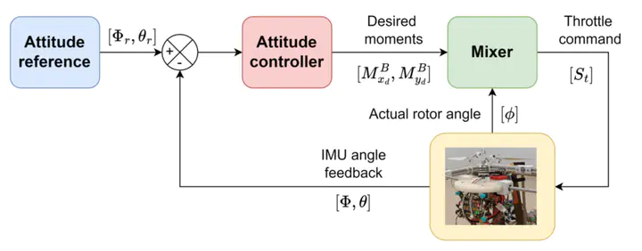 Micro Aerial Robots (MARs) have demonstrated outstanding performance in autonomous applications, making the performance of their controllers critical. The development of controllers for aerial robots using alternative designs rather than standard ones requires that their performance be investigated using different approaches prior to flight. Hence, this paper presents a 2-degree-of-freedom (DOF) test platform designed to evaluate both controller performance and the swashplateless mechanism that generates orientation and position changes. Recent studies have indicated a need to determine the relationship between the hinge angle and controller performance in the context of swashplateless mechanisms. This paper found that the different hinge angles and controller performance relationships on the 2-DOF test platform are investigated through reference tracking and wind disturbance tests. The swashplateless mechanism with a hinge angle of 30◦ showed better performance in terms of control sensitivity and wind disturbance rejection compared to 45◦ and 60◦ hinge angles. Disturbance rejection performance has been tested at a wind speed of 3.3 m/s simulating moderate outdoor wind conditions. The results show that different hinge angles affect controller performance in terms of rise and settling time, overshoot and integral of time absolute of error (ITAE). It has been shown that the choice of hinge angle in the swashplateless mechanism should be such to improve flight performance according to specific application and performance requirements. In addition to advancing the design and control of MARs, these results are expected to contribute to improvements in potential application areas of aerial robots, such as inspection and sensing.